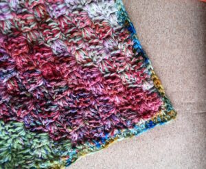 In einer von diesen Weihnachtspausen sichtete ich meine Garnvorräte und erkannte, dass ich davon echt viel hatte. Falls es noch jemand kennt, dann willkommen im Club. Ich überlegte also, etwas größeres zu beginnen. Und ich hatte erst vor kurzem das Corner to Corner Muster entdeckt. Das bedeutet, dass ganz harmlos an einer Ecke (corner) mit wenigen Maschen begonnen wird. Ich hatte mir einige Videos bereits angeschaut und war sehr angetan von den Maschen und den Möglichkeiten. Klein anfangen und dann noch nicht genau wissen, wie es endet, finde ich spannend und herausfordernd. Ich weiß, das mag nicht jeder, viele Menschen können noch nicht einmal beginnen, wenn sie keinen exakten Plan haben, wie es enden soll.