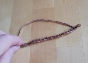 Material: ca 50 bis 100 Gramm Wolle, Mützengarn, Mischgarn, Polyacryl oder Garn aus den Wollvorrat.
